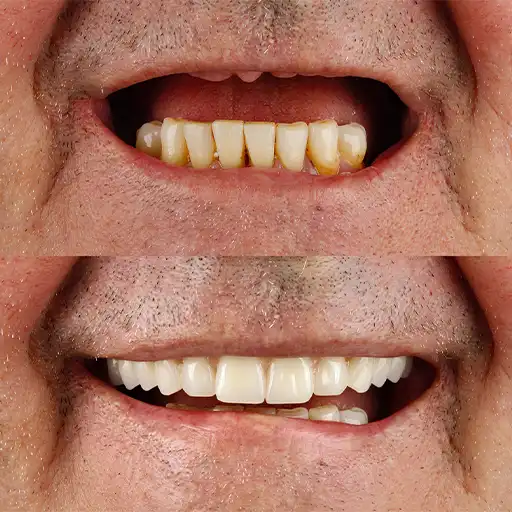 Permanent, Fixed Smile with 4 Implants per Arch